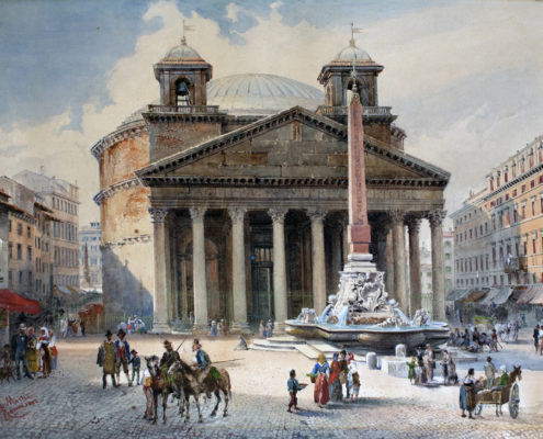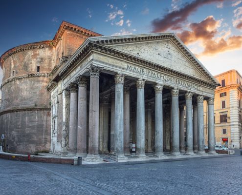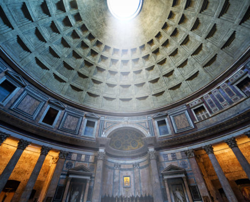 Since the year 608 a.D. the name changed into Basilica of Santa Maria ad Martyres, this fact was the reason why the Pantheon is still intact, and it inspired, and still inspires generations of architects fascinated by the self-portant dome built in roman concrete and its central “Oculus”. Travelers still wonder about the perfect proportions reminding Archimedes and its solid geometry. The Pantheon it is still shocking everyone for the untouched monumentality. Rome’s Details will guide the guests in this unicum, to discover the effect of the light filtered by the “Oculus”, to see the tombs of the Italian Kings, to pay a tribute to Raphael buried in the temple that concentrates. The best of the Italian spirit, or to offer a prayer to Our Lady of the Martyrs.
