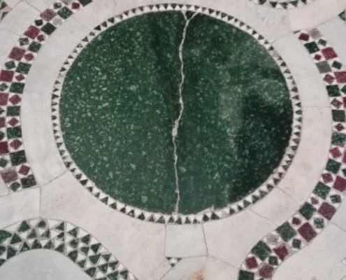The cosmatesque floors, are differents one by the other, the typology of designs is infinitive and represents a sort of code in marble, that just recent sudies started to decodify, and in this operation are helping the modern heirs of these past masters: 15 families that since the middleages pass from one generation to the other the secrets of this art the materials, and some of the precious comprehension keys.