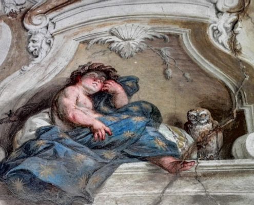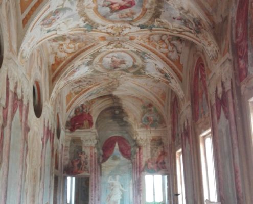 The residence passed through the centuries, in the belongings of different noble families as the family Odescalchi. In 1734 Prince Odescalchi entrusted to Giovanni Paolo Pannini the perspective gallery – shown above – long 19 meters , with allegories of the four seasons and the four elements, all this beauty overlooking Rome from a privileged position.